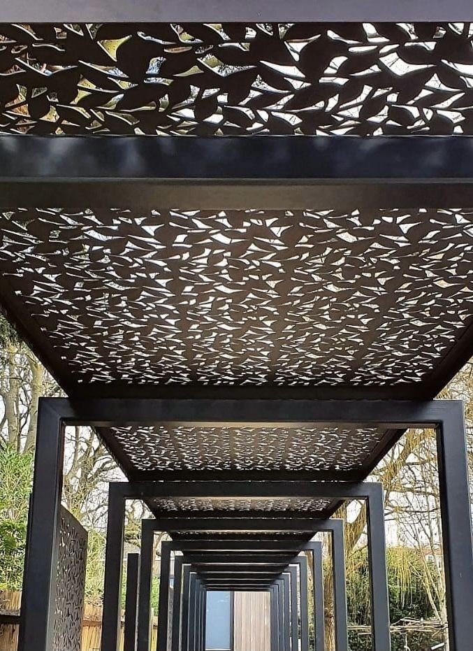 يمكن تنفيذ مظلات قص ليزر للحدائق بتصاميم متنوعة تناسب مختلف الأذواق، مثل التصاميم النباتية أو الزخارف العربية أو الأنماط الهندسية العصرية. كما يمكن دمجها مع جلسات خارجية أو طاولات طعام لتوفير مساحة مريحة للاجتماعات العائلية أو استقبال الضيوف.