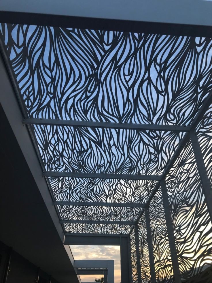 يتم تصميم مظلات قص ليزر للممرات بطريقة تسمح بمرور الضوء والهواء بشكل متوازن، مما يمنح الممرات إحساسًا بالاتساع والراحة. كما يمكن تنفيذها بأشكال مقوسة أو مستقيمة حسب تصميم المبنى.